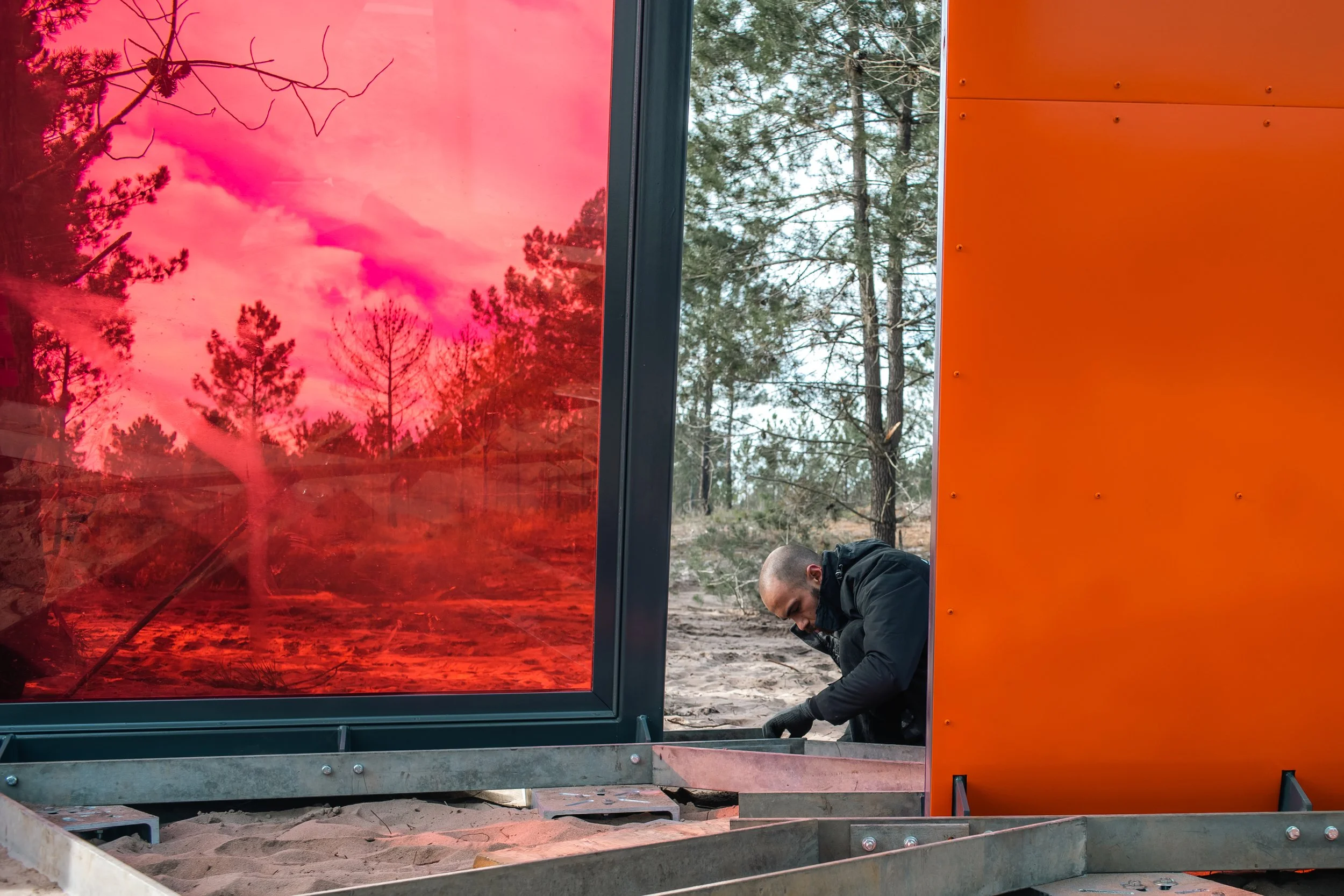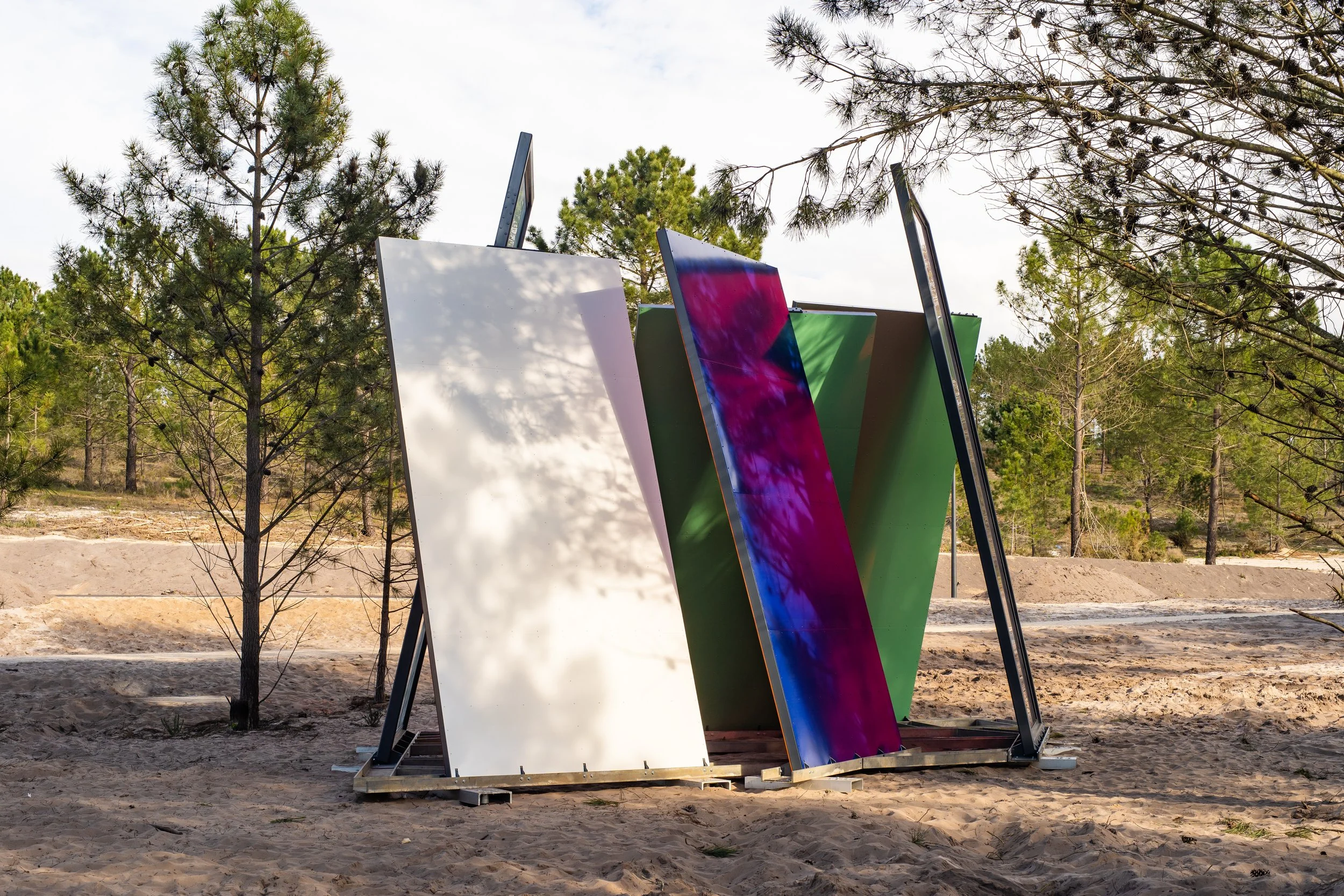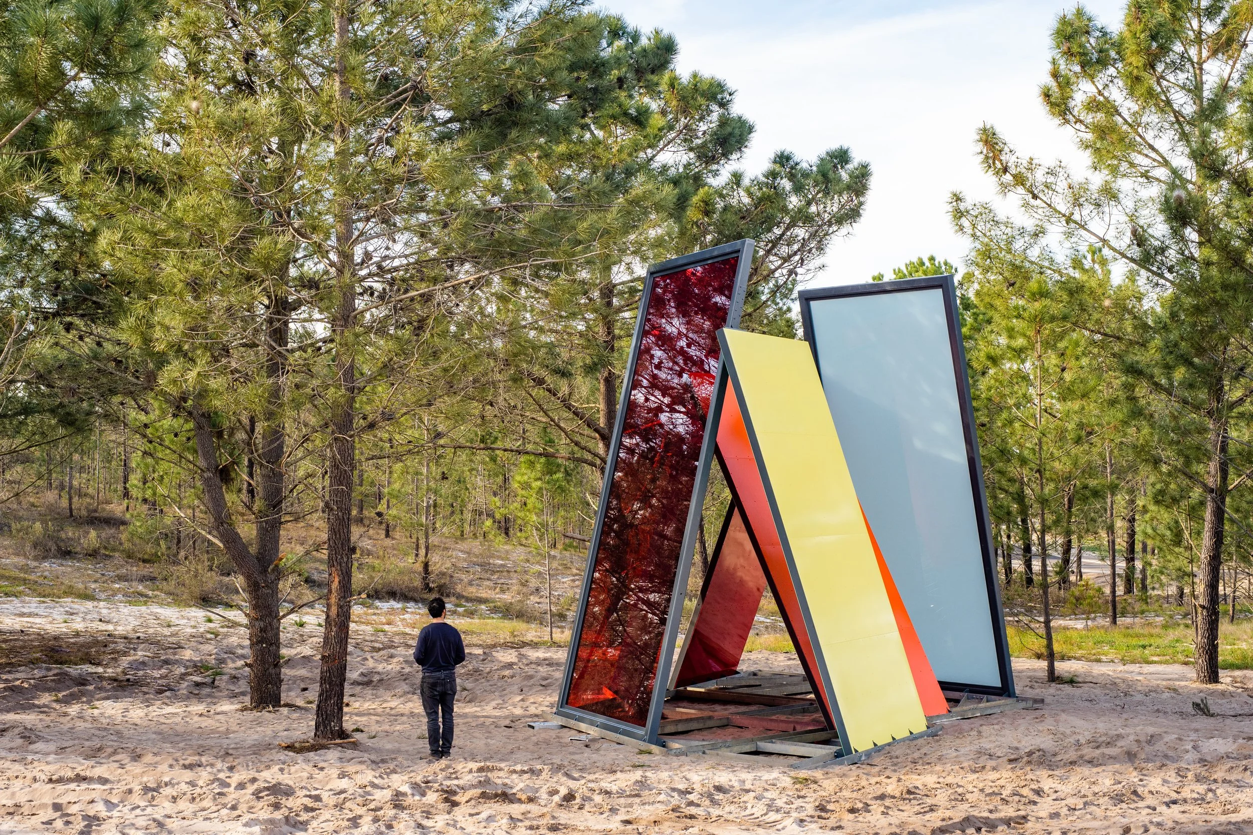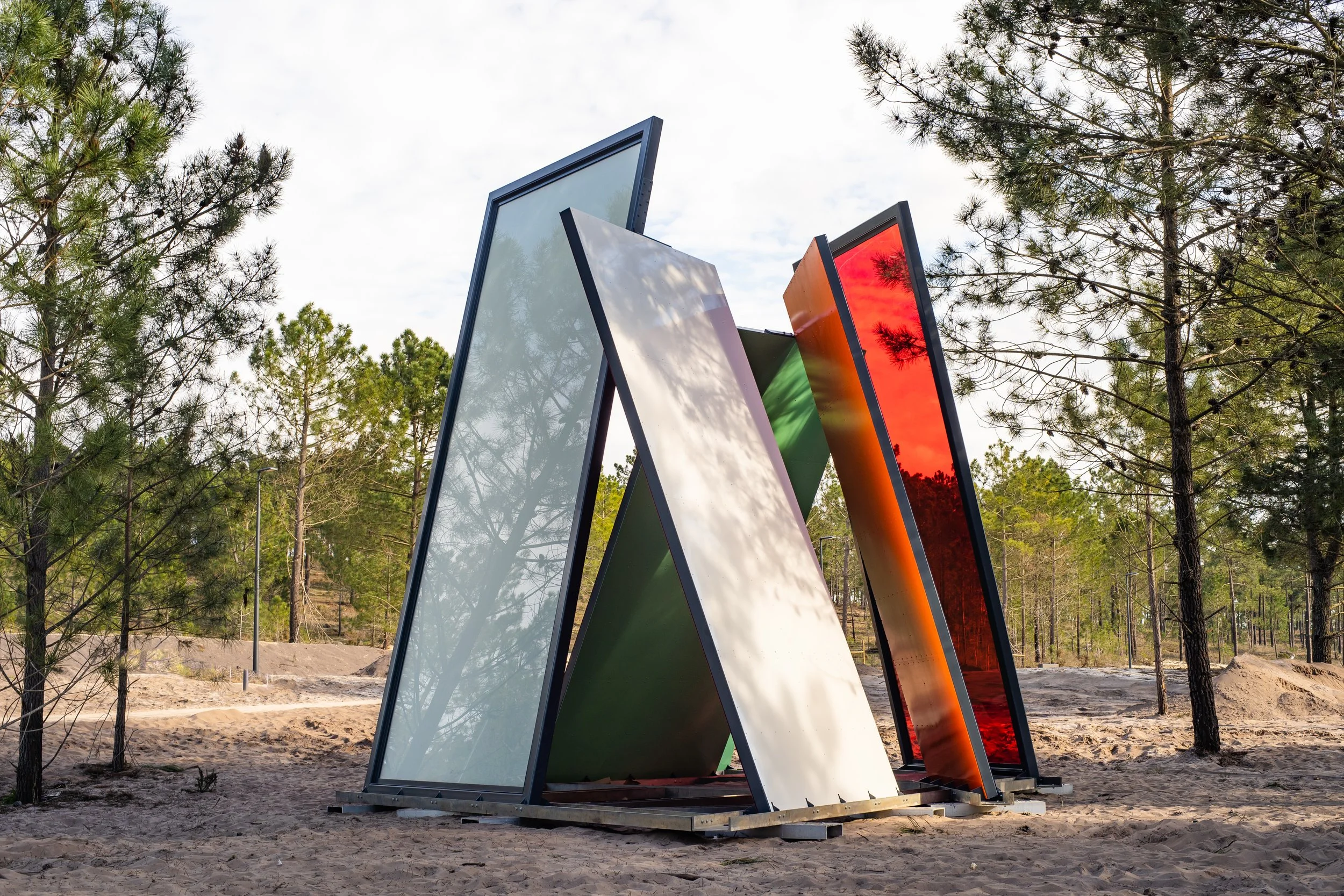 Made up of a set of brightly coloured steel and glass panels, José Pedro Croft's 6-metre-high sculpture is perhaps the most significant artwork located in Comporta to date.